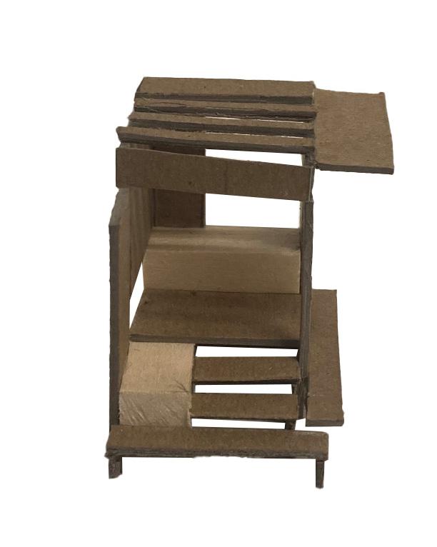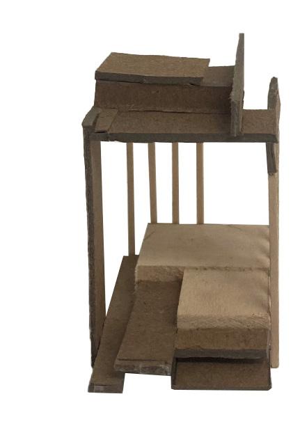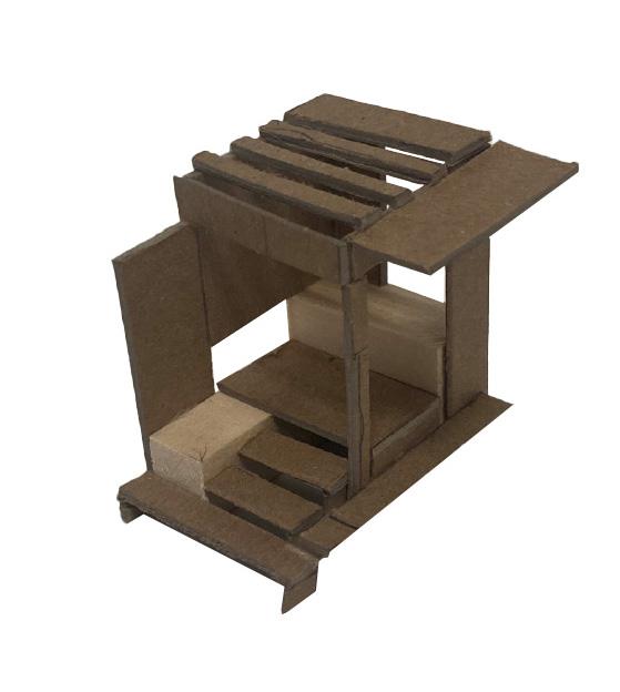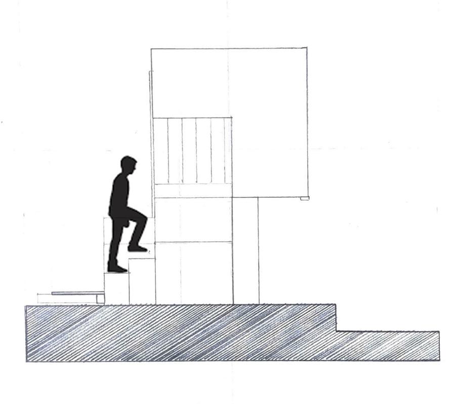 Given a 6"w x 8"d x 6"h cube, I was tasked in expanding it to a larger volume by carving and shifting pieces into a proportioned, usable space. The actions of walking, climbing, and sitting were studied to practice observational research as a design methodology.