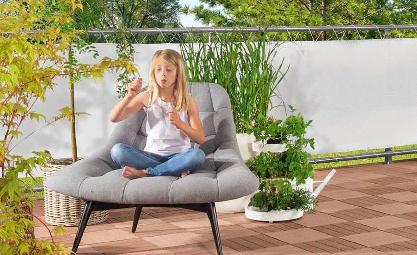 5| Gartenmöbel-Serie „Sanogo“ Genieße entspannte Stunden mit der GartenmöbelSerie „Sanogo“. Die Rückenlehne ist stufenlos verstellbar und bietet somit höchsten Sitzkomfort. Der Ausziehtisch „Sanogo“ mit einer Platte aus robusten Keramikfliesen in „washed grey“ bietet Platz für die ganze Familie. Der Synchronauszug erleichtert das Ausziehen auf ca. 210 cm. Aluminiumgestell, matt anthrazit, Kunststoffgeflecht mit Gasdruckfeder in silbergrau/taupe. Die Dining-Sessel sind inkl. Sitz- und Rückenkissen. Move-Sessel „Sanogo“ ca. B 61 x H 109 x T 72 cm, Art.-Nr. 45284256, 299.- € Ausziehtisch „Sanogo“ ca. B 160/210 x H 76 x T 100 cm, Platte aus Keramikfliesen, Art.-Nr. 45665327, 699.- €