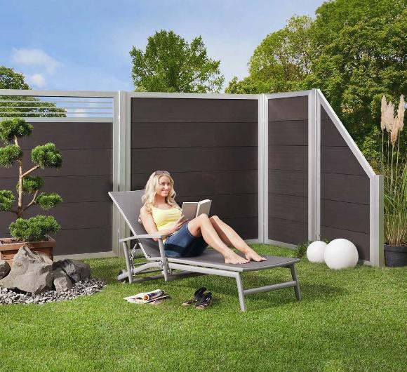 Stell Dir Dein Gartenmöbel-Set selbst zusammen mit den verschiedenen Artikeln der Serie „Catania“. Gestell und Armlehnen aus Aluminium, „Teaklook“, Flächen aus Ranotex®-Gewebe, 4*4, grau.