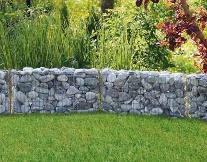 Einfacher Aufbau durch Steckverbindungen. Zink-Aluminium verzinkt, Maschenweite ca. 10 x 10 cm. Empfohlene Steinkörnung ca. 2,5 – 6 cm, Steinbedarf ca. 400 kg. Ca. B 100 x T 50 x H 50 cm. Ohne Befüllung. Art.-Nr. 190173