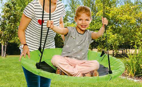 Mit Standpfosten und Schaukelbalken aus 10-cm-Rundholz, 2 Schaukelbrettern, Strickleiter und Leitern, Bausatz aus Nadelholz. Podesthöhe ca. 145 cm.