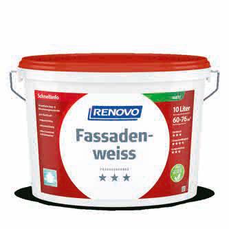 Matte Fassadenfarbe für einfache Neu- und Renovierungsanstriche, gute Deckkraft, strapazierfähig, wasserdampfdurchlässig, weiß. 10 L. Art.-Nr. 820203