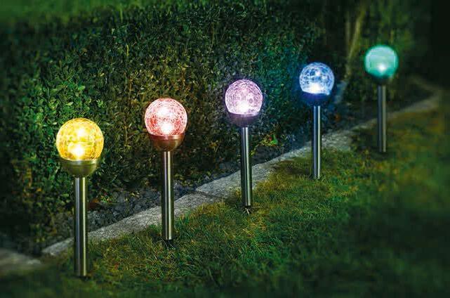 IP44, Betriebsdauer bis zu 8 Std., mit Erdspieß, bernsteinfarbenes Licht, Ein-/Ausschalter. Inkl. LED-Modul und Akku. Versch. Ausführungen.