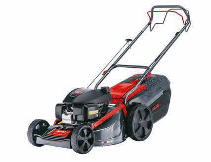 Schnittbreite ca. 46 cm, 1-Gang-Hinterradantrieb, zentrale Schnitthöhenverstellung ca. 25–75 mm, Hubraum ca. 149 cm³, Räder-Ø ca. 180/255 mm, Mähen, Fangen, Mulchen, Seitenauswurf, Stahlblechgehäuse.