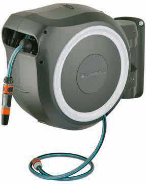 Schlauchlänge 25 m, Ø 13 mm (1/2"), Anschlussschlauchlänge 1,5 m, automatischer Schlaucheinzug, Diebstahlschutz, UV- und Frostschutz.