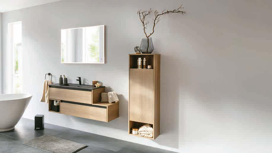 Spiegelschrank „Vita“, Summer-Oak, ca. B 100 x H 69,6 x T 26,5 cm, Art.-Nr. 45804880, 463.20 € statt 579.- € Waschtisch „Vita“, schwarz-matt, ca. B 101 x H 158 x T 46,5 cm, Art.-Nr. 45804892, 351.20 € statt 439.- €