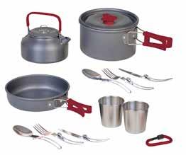 Camping Kochgeschirr 12-tlg. Für 2 Personen. 2 x Becher, 2 x Besteck, Topf, Kessel, Pfanne.