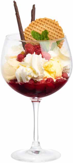 Joghurt-Waldbeeren-Eis mit fruchtigen Waldbeeren und viel Schlagsahne garniert.