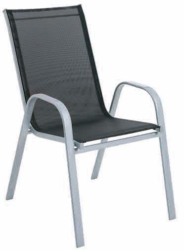 Stapelbar, Stahlgestell, silber, Textilene-Bezug, schwarz.