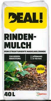 Schutz und Pflege für Gartenanlagen, Pflanzgefäße, Beete und Gehwege. 60 L. Rindenmulch, Körnung 0–20 mm, Art.-Nr. 45626279, 7.99 € (L 0.13 €) Pinienrinde, Körnung 7–15 mm, Art.-Nr. 45626275, 9.99 € statt 15.99 € (L 0.17 €)