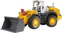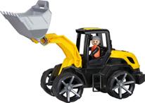 Radlader mit großer abkippbarer Ladeschaufel. Mit Knicklenkung und geländegängiger Hinterachse. Motorhaube zum Öffnen und Profilreifen. Länge ca. 52 cm. Ab 4 Jahren.