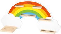 Aus massivem und wetterbeständigem Holz. Mit Kunststoffseilen, Seillänge bis zu 180 cm. Sitzfläche ca. 30x30 cm. Belastbar bis max. 60 kg. Ab 12 Monaten.
