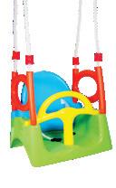 2 3-in-1 Schaukel Mit Kunststoffhalterung. Vorder-, Rücken- und Seitenteil abmontierbar. Mit verstellbaren Seilen. Belastbar bis max. 40 kg. Ab 18 Monaten.