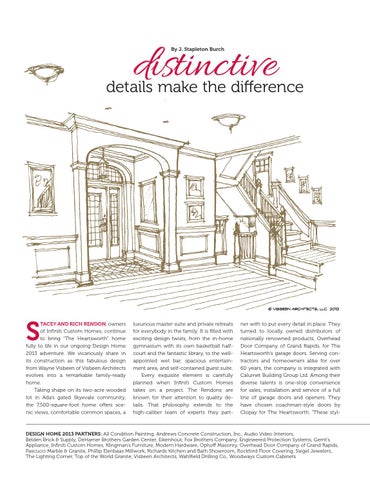 deSign home 2013 PaRtneRS: All Condition Painting, Andrews Concrete Construction, Inc., Audio Video Interiors, Belden Brick & Supply, DeHamer Brothers Garden Center, Eikenhout, Fox Brothers Company, Engineered Protection Systems, Gerrit’s Appliance, Infiniti Custom Homes, Klingman’s Furniture, Modern Hardware, Ophoff Masonry, Overhead Door Company of Grand Rapids, Pascucci Marble & Granite, Phillip Elenbaas Millwork, Richards Kitchen and Bath Showroom, Rockford Floor Covering, Siegel Jewelers, The Lighting Corner, Top of the World Granite, Visbeen Architects, Wahlfield Drilling Co., Woodways Custom Cabinets