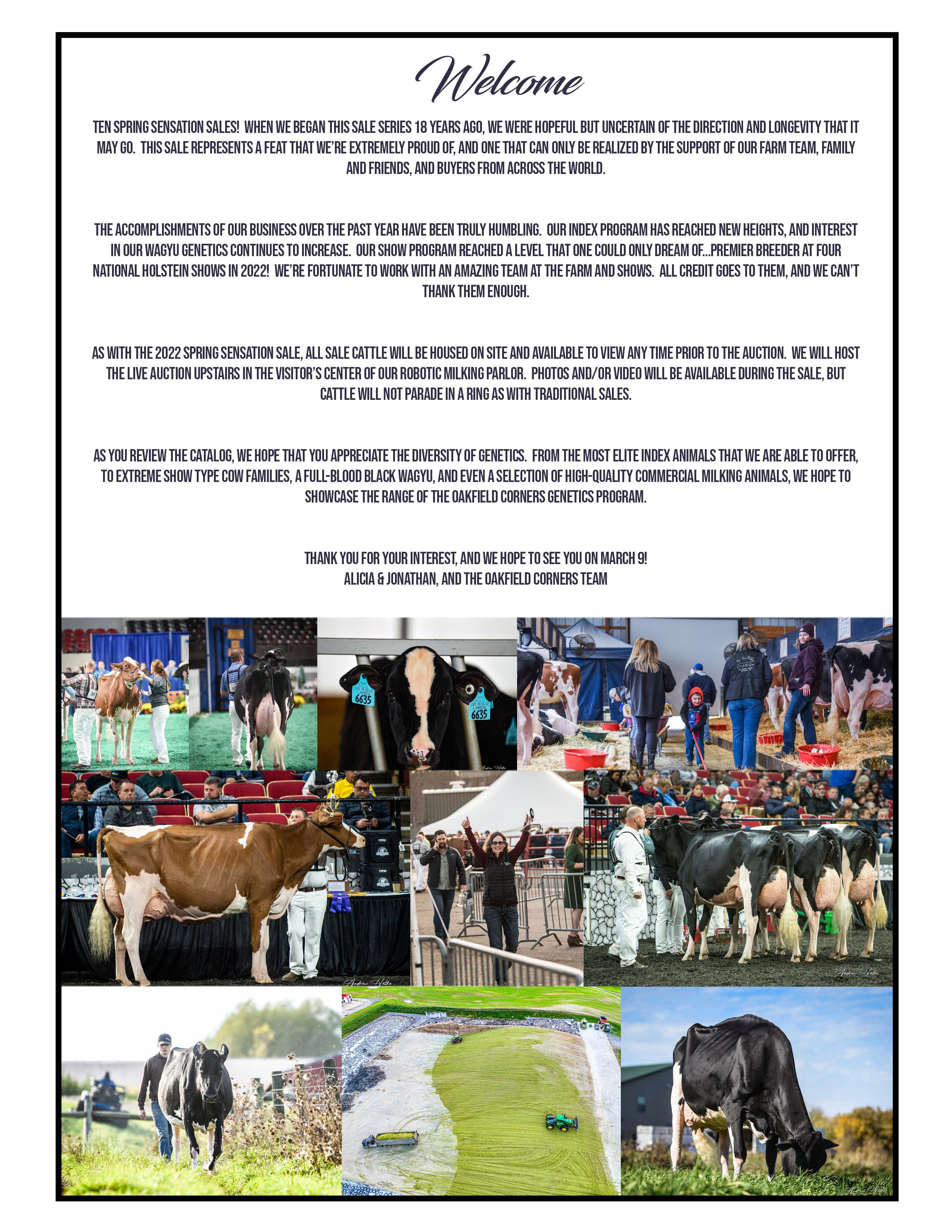 Terms of Sale : Cash or good check on sale day. For all other terms and conditions, refer to the Holstein Association Terms and Conditions in the back of the catalog. Buyers assume all liability upon purchase.