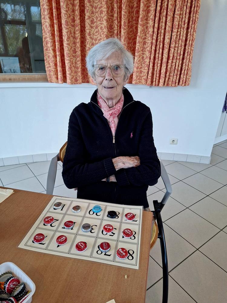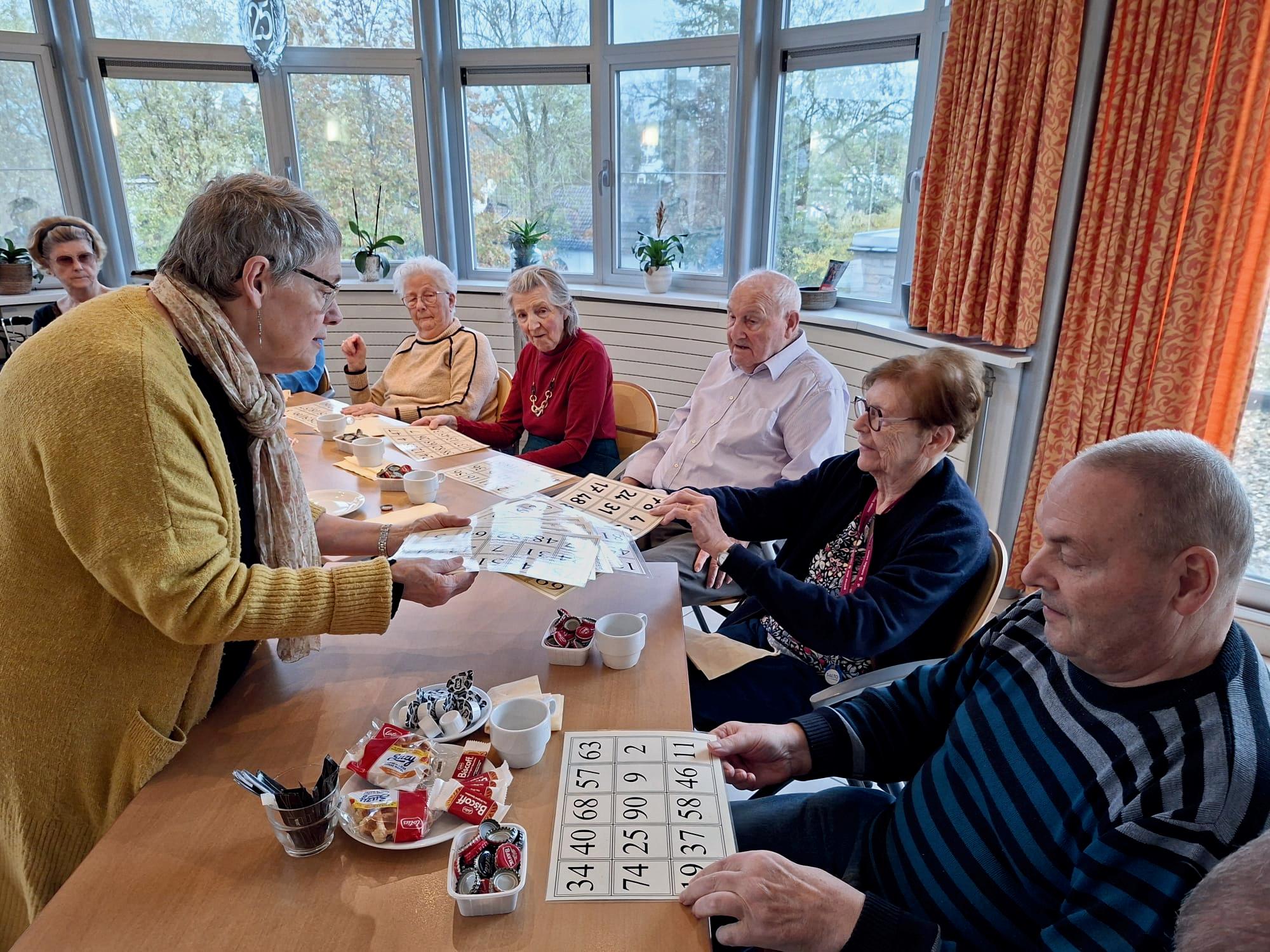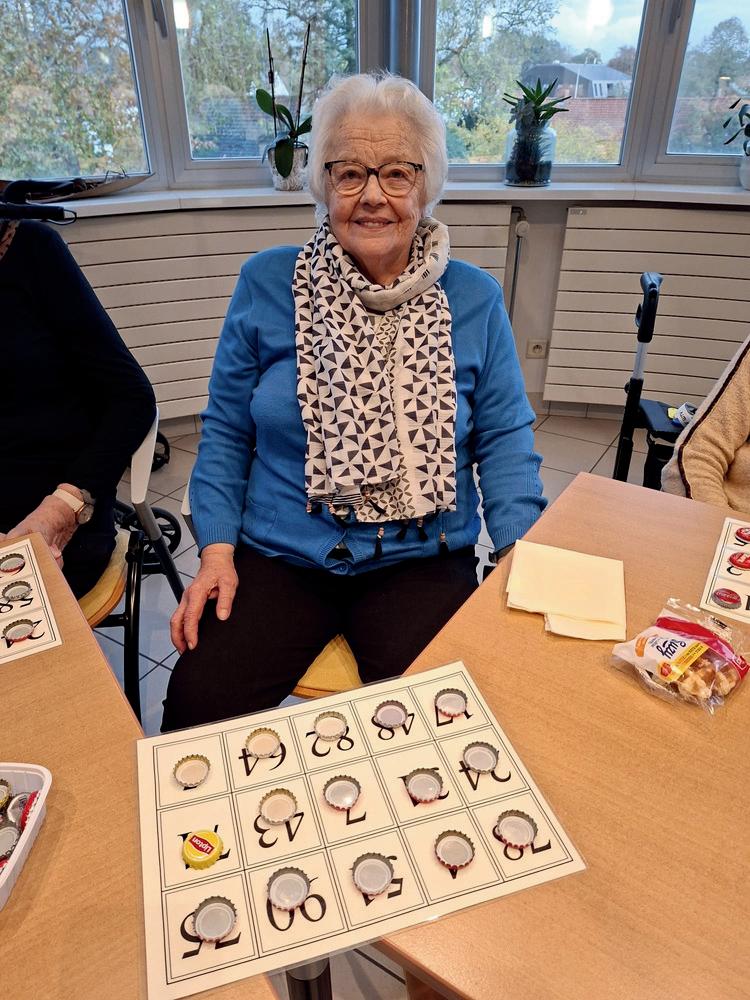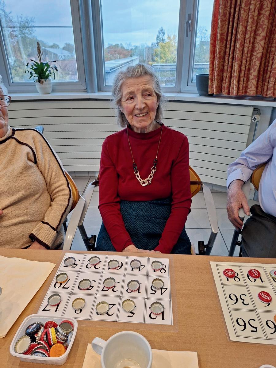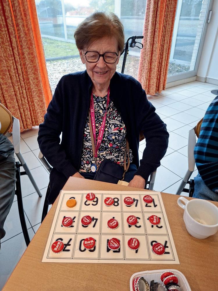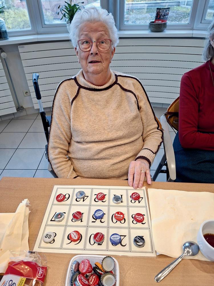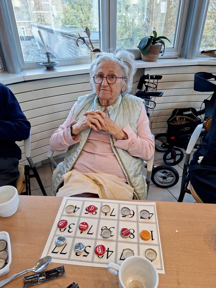 Mevrouw houdt van lezen, puzzelen, kaarten en Diamond Painting.