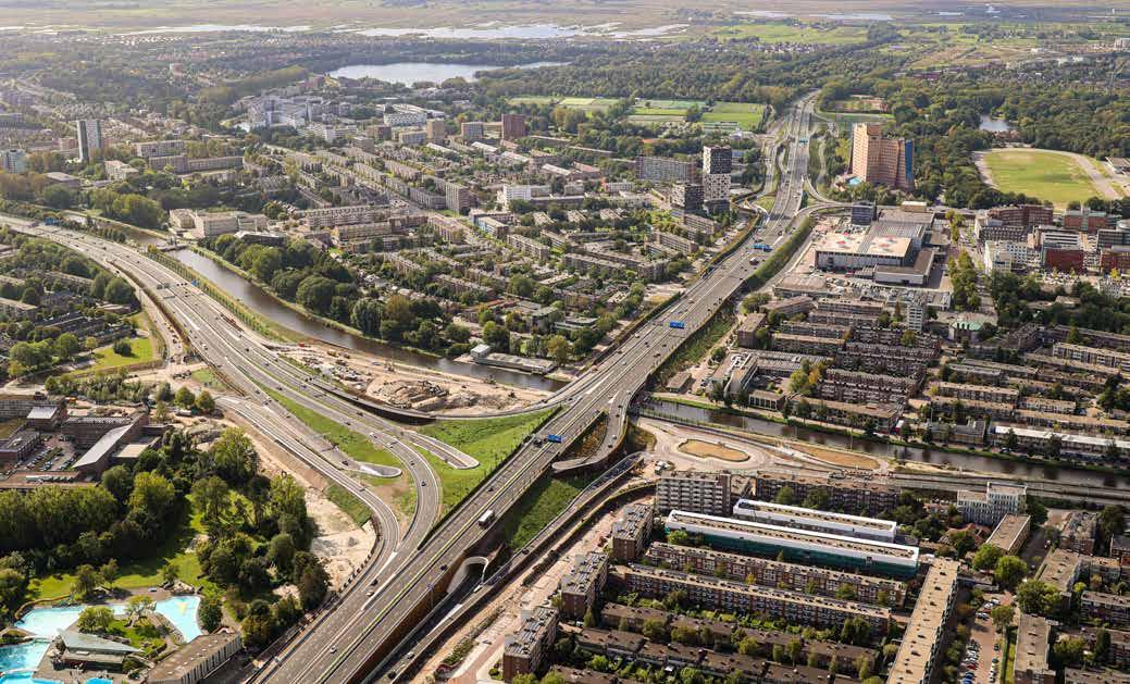 Het Julianaplein is geen kruispunt meer en de verkeerslichten zijn verdwenen. Het verkeer kan nu doorrijden. Foto: Rijkswaterstaat.
