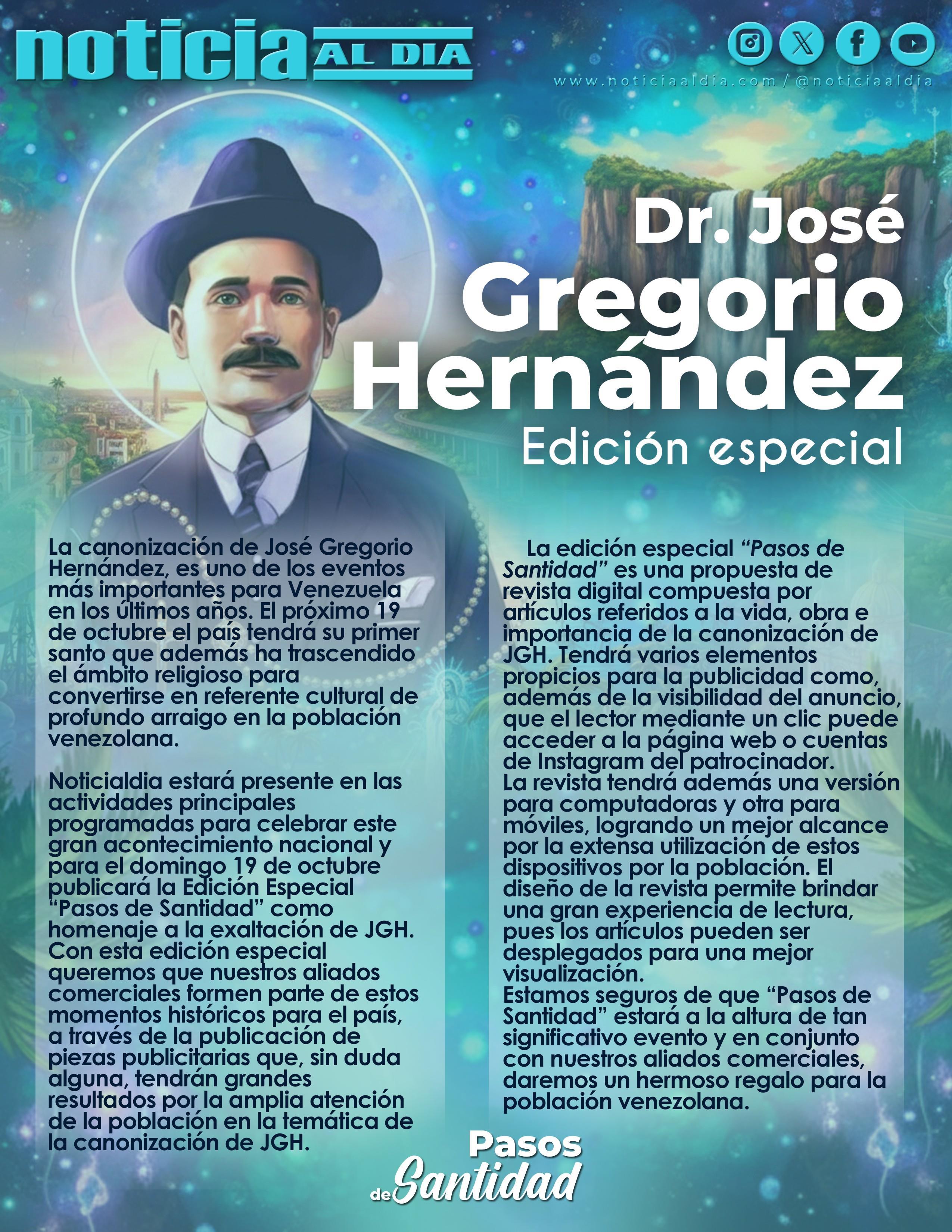 Nos dirigimos a usted en un momento que trascenderá a la historia contemporánea de Venezuela. El próximo domingo 19 de octubre, nuestro país y el mundo católico serán testigos de un evento de una magnitud espiritual y cultural sin precedentes: la canonización de nuestro Venerable José Gregorio Hernández, que lo elevará como el primer santo venezolano.