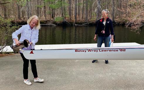 Lawrence ’82 shell was christened on April 15, 2023, with members of the Form of 1982 and members of the girls first boat in attendance. In her first race, the Groton girls first boat secured victory over Lincoln.