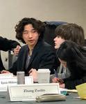 COLLABORATION AND POWER PLAYS, AS GROTON ATTENDS HARVARD MODEL CONGRESSLeft: Jessica Lee ’24 approaches the dais. Right: Griffin Gura ’24 crafts legislation.