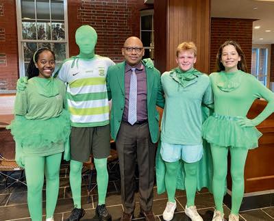 Students then gathered for announcements in the Sackett Forum, where Headmaster Temba Maqubela was waiting in the green jacket a Surprise Holiday icon. Later in the morning, students piled into buses to Boston and Cambridge and to a nearby mall. Fall weather in the 70s beckoned them to Back Bay and Harvard Square, though some chose to stay on the Circle and relax.