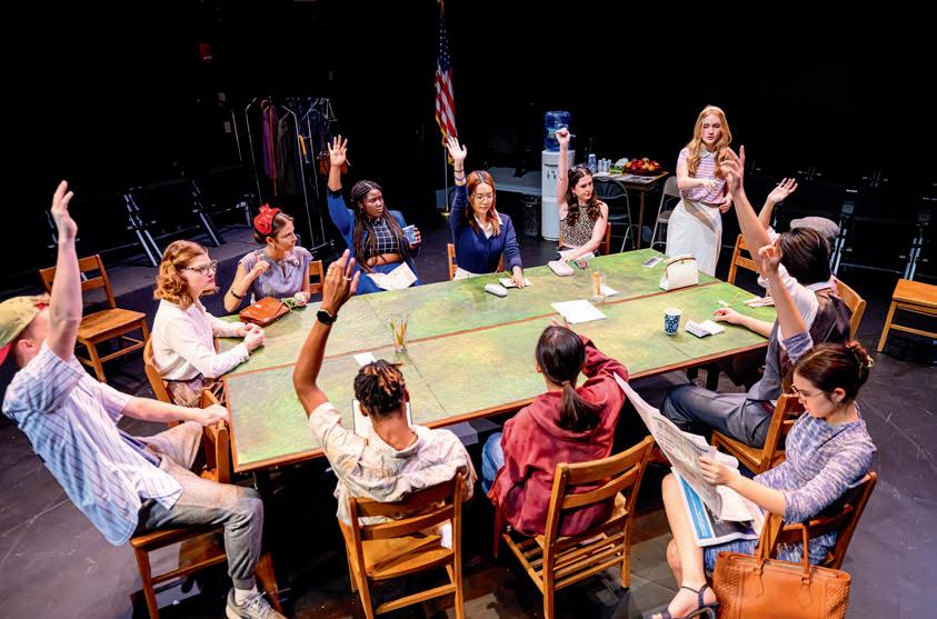 Twelve Angry Jurors, an adaptation of Twelve Angry Men by Reginald Rose, brought courtroom drama to the Campbell Performing Arts Center in November. As a jury deliberated the fate of a man accused of killing his father, one quiet holdout sharpened the meaning of “reasonable doubt” in a play that probed disturbing questions about racism in the American judicial system.