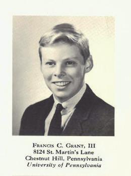 FRANCIS C. GRANT III , also known by his friends as “T,” graduated from Groton in 1961 and went on to attend the University of Pennsylvania and the Wharton School. He spent his career in real estate but was an avid traveler, sailor, and automobile enthusiast who loved being out and about, on the water or on the road, exploring the world around him.