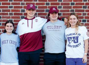Karenna, an all-around impact player on the soccer field, has signed a letter of intent to play at Holy Cross. Hugh and Allie both signed letters of intent to continue their lacrosse careers Hugh, a face-off specialist, goes to Colgate University, and Allie, who plays attack, will be at Furman University. Look for pitching ace Dylan Vigue on the mound for the University of Massachusetts baseball team.
