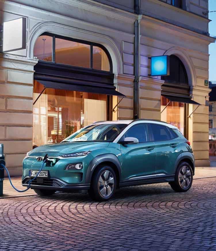 Nýr 100% rafdrifinn Hyundai KONA er fyrsti rafdrifni jepplingurinn á markaðnum. *Hann hefur eitt mesta drægi bíla í þessum stærðarflokki eða 449 km samkvæmt nýjum WLTP mælingum. Meðal búnaðar í nýjum Hyundai KONA er skynvæddur hraðastillir, sjálfvirk neyðarhemlun, sjónlínuskjár sem varpar upplýsingum um hraða og leiðsögn í framrúðu, Krell hljóðkerfi og margt fleira. Hyundai KONA er fáanlegur með 39kW rafhlöðu eða 64 kW rafhlöðu.