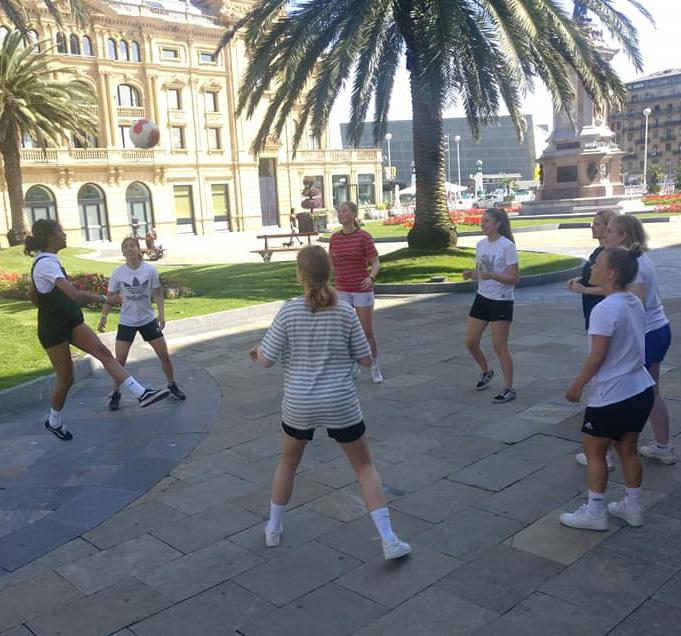 Daginn eftir var haldið með lest til Bordeaux þar sem liðið var sótt í rútu. Þegar komið var til San Sebastian var farið rakleiðis niður á hina tilkomumiklu strönd borgarinnar sem var rétt hjá gistiheimilinu. Markmiðið var þó ekki að sóla sig heldur að gera léttar æfingar (sem vöktu mikla athygli strandgesta) enda fyrsti leikur morguninn eftir.