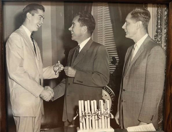 Answer (“A”): I was a Navy brat. My father was a Navy doctor. I grew up on military bases in various states. My memories include long-distant car trips— parents, four children and our dog—visiting my grandfather’s farm in Illinois. As a teenager, I was a page in the U.S. House of Representatives and otherwise worked on Capitol Hill in Washington, D.C.