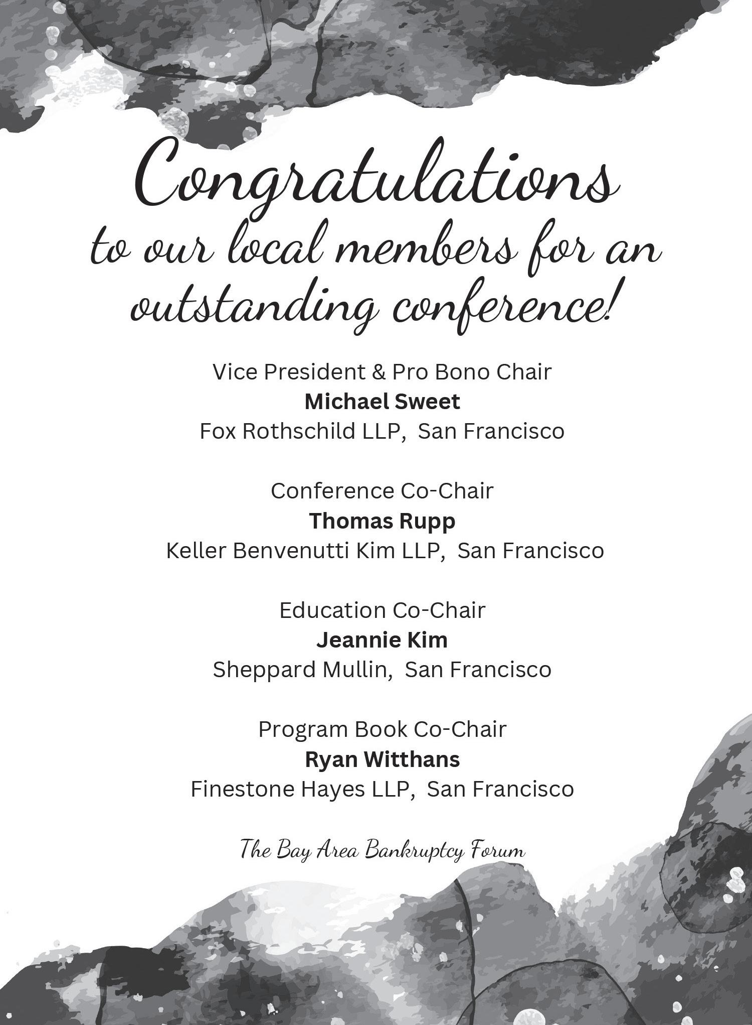 The San Diego Bankruptcy Forum proudly recognizes its community members’ whose volunteer efforts and leadership have helped create a successful 2023 California Bankruptcy Forum Conference