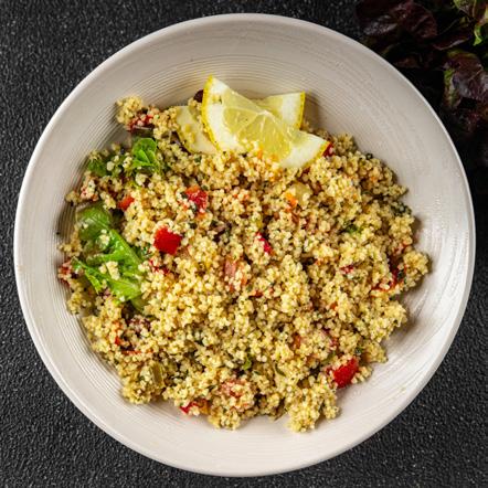 4. Mélangez le couscous avec les légumes grillés, les tomates, la feta, la menthe et le persil finement hachés.