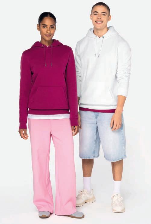 2-2253 : Sweat-shirt capuche manches courtes coton bio et polyester recyclé