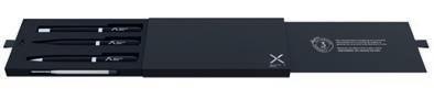 Trio d’élégance : stylo bille, roller et crayon graphite au fini soft touch, rehaussés d’une gravure effet miroir et présentés dans un élégant étui coulissant