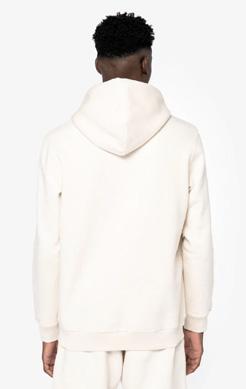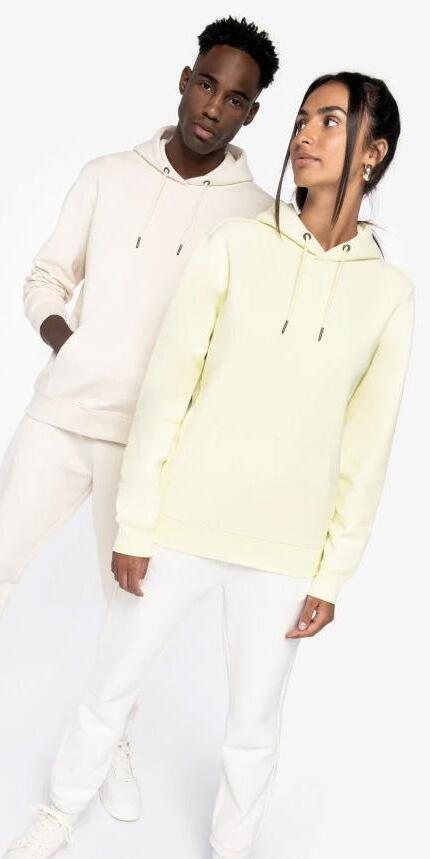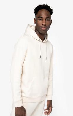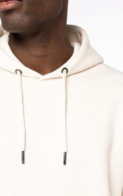 Hoodie en coton peigné ringspun. Coupe ajustée. Molleton gratté 3 fils LSF (Low Shrinkage Fleece : molleton pré-rétréci). 1/2 lune au dos. Poche kangourou. Bord cote 1 x 1 bas de vêtement et bas de manches. Double surpiqûre bas de manches, emmanchures, bas de vêtement et 1/2 lune. Bande de propreté intérieur encolure dos. Capuche doublée en matière principale avec point d’arrêt cordon. Cordon rond avec embouts et oeillets en métal recyclé.