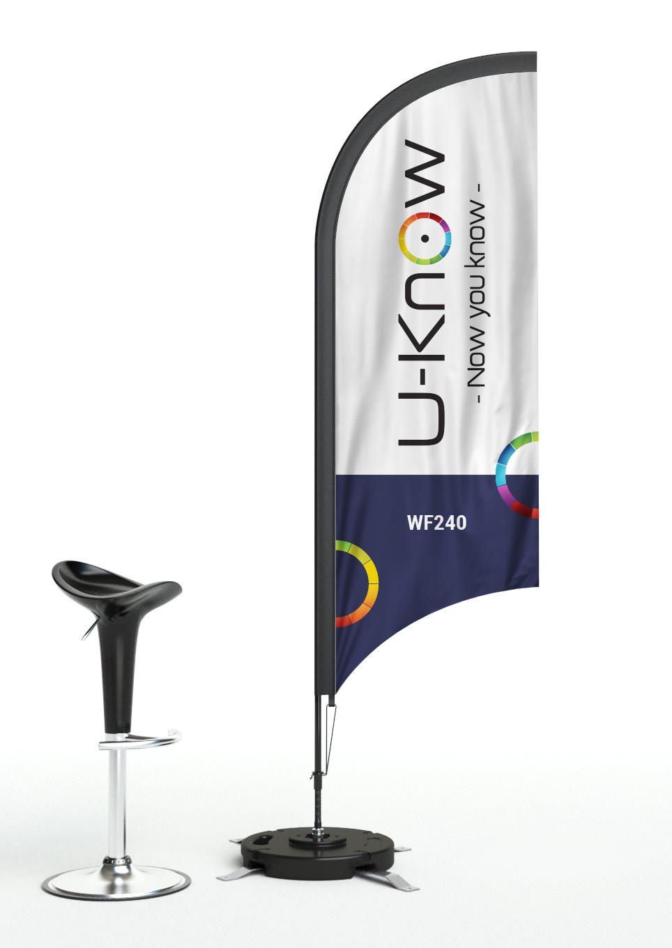 Beach flag classique en forme d'aile d'avion ou plume de 2,4m de hauteur.