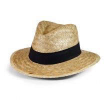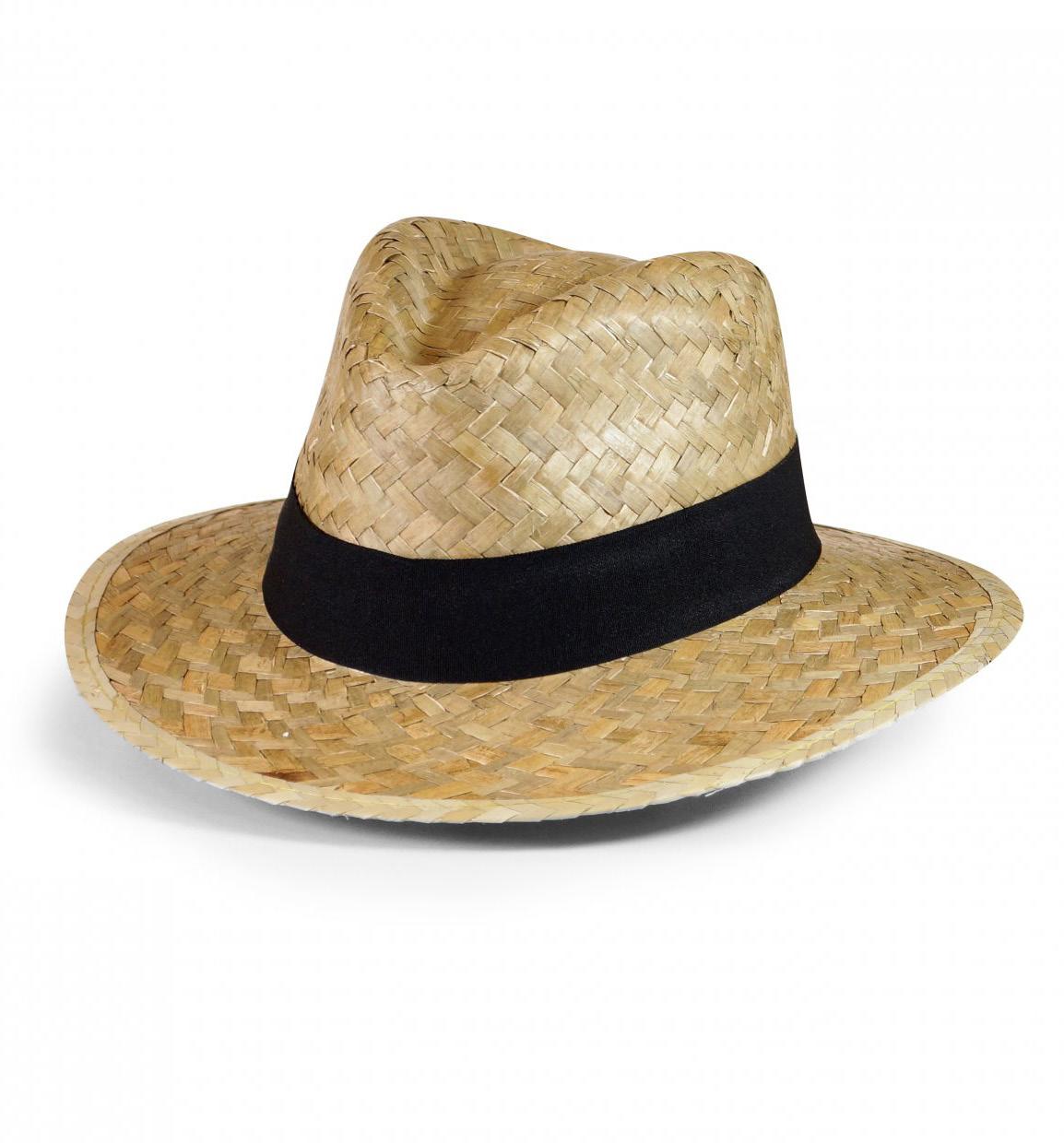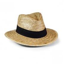 Chapeau panama en paille. Bandeau cousu personalisable, en polyester recyclé de 40 mm de largeur.