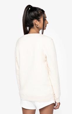 Coton peigné ringspun. Coupe ajustée. Molleton gratté 3 fils LSF (Low Shrinkage Fleece : molleton pré-rétréci). 1/2 lune dans le dos. Bord cote 1 x 1 encolure, bas de vêtement et bas de manches. Double surpiqûre bas de manches, emmanchures, bas de vêtement. Simple surpiqûre à l’encolure. Bande de propreté intérieur encolure dos.