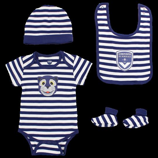 Développement d’un coffret complet (body, bonnet, bavoir, chaussons) aux couleurs du club.