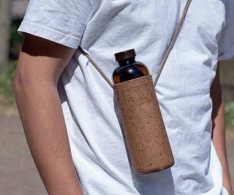 12-1428 : Gourde en verre recyclé habillée d’une housse en tissu de liège