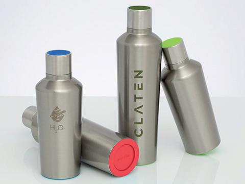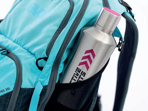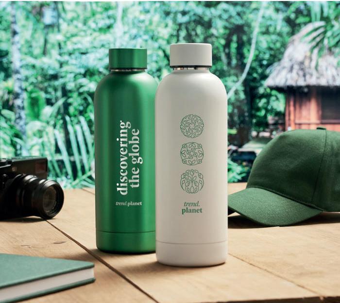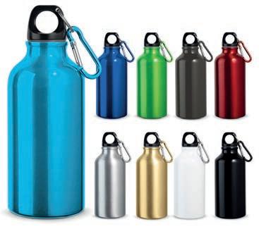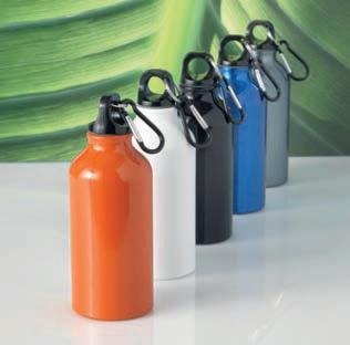 Bouteille en aluminium avec finition mate et mousqueton pour un transport facile. Capacité jusqu’à 550 ml.