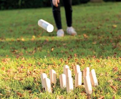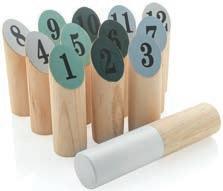 Jeu tactique et addictif de quilles scandinaves : le premier joueur qui atteint exactement 50 points gagne. Le jeu comprend : 12 quilles numérotées et 1 bâton à lancer, tous fabriqués en bois de pin robuste. Pochette en coton et règles du jeu sont incluses.