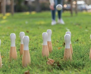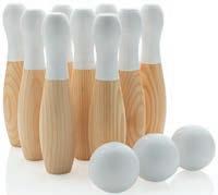 Jeu de quilles artisanales en bois de pin, amusant pour les adultes comme pour les enfants. Installation facile : il suffit d’installer les quilles, de fixer un point de lancement et vous êtes prêt à jouer. Le set comprend 9 quilles et trois boules. Pochette en coton et règles du jeu incluses.