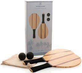 Jeu de frescobol de luxe fabriqué à partir de bois de pin mélangé à du bois de sapelli, dont le motif du bois peut être différent sur chaque raquette. Avec un grip extra confortable pour un contrôle parfait. Pochette en coton et 2 balles incluses.