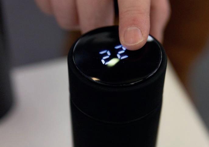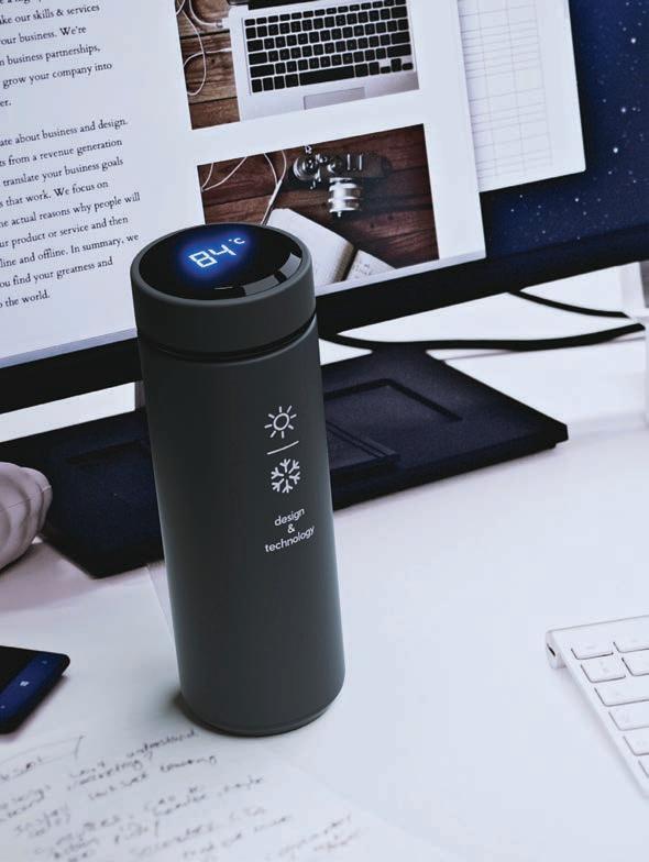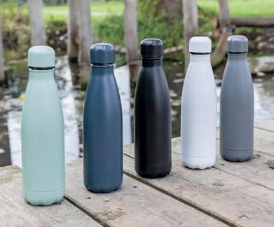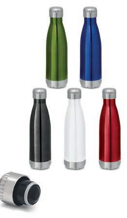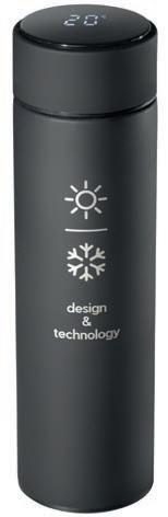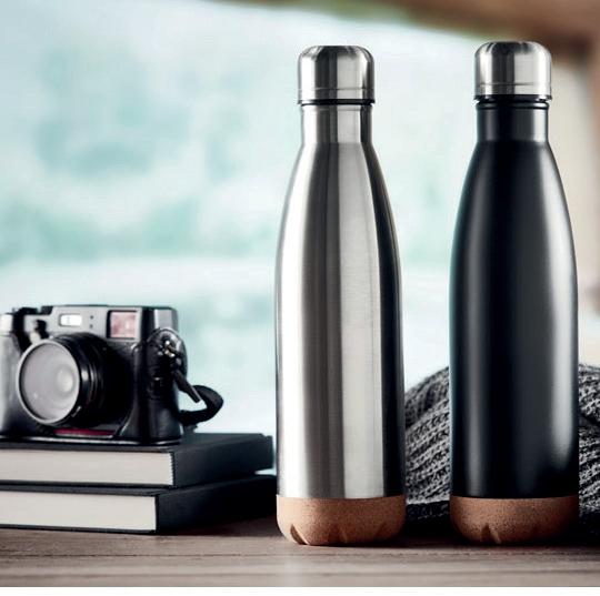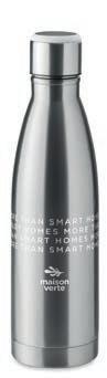Bouteille thermique en acier inoxydable à double paroi avec couvercle, avec une capacité jusqu’à 510 ml et livrée sous boîte.