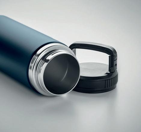 Gourde en inox double paroi de grande capacité (1 L), avec une poignée sur le bouchon. Livrée en boîte individuelle illustrée. Marquage 1 couleur noir conseillé et par défaut, quadrinumérique ou quadrinumérique nominative.