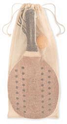 Set de beach tennis composé de 2 raquettes en bois de rose avec grip en PU et d’une balle souple. Présenté dans une pochette en coton.