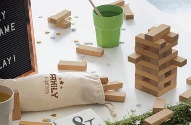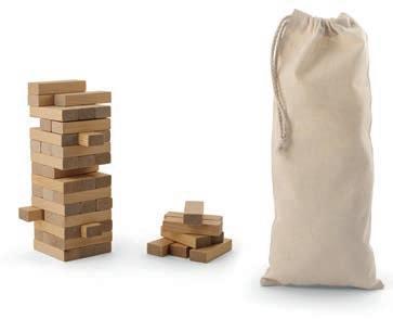 Jeu en bois de 54 pièces. Livré dans une boîte en carton et avec une housse en coton personnalisable.