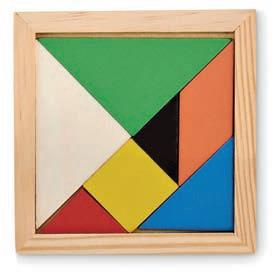 Jeu de puzzle tangram en bois coloré. 7 pièces.